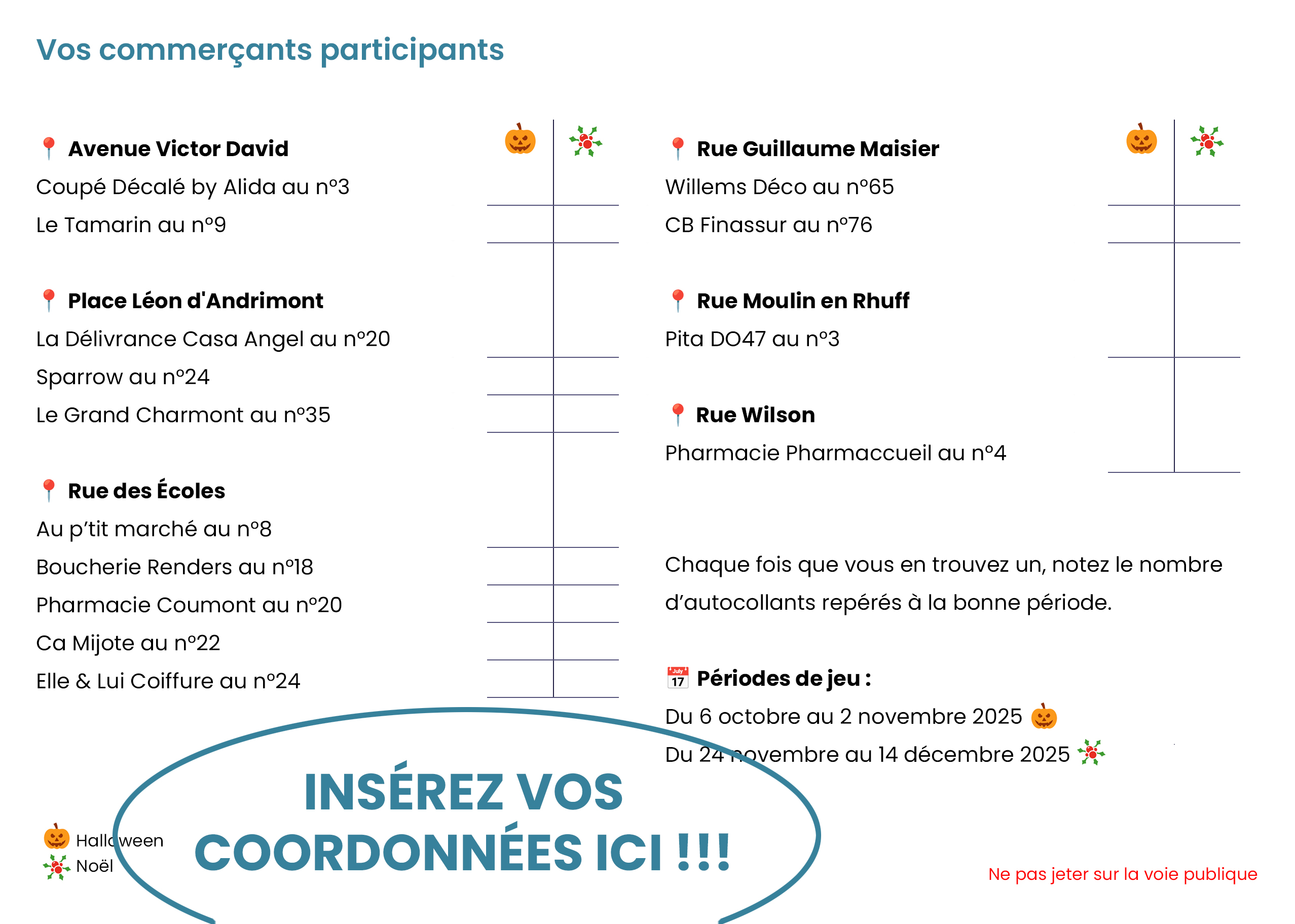Le formulaire de participation est disponible uniquement auprès des commerçants participants (pas en ligne).